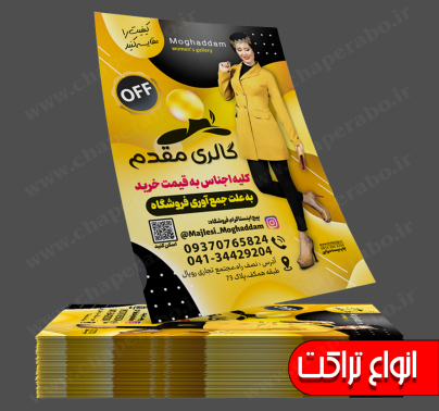 مشتریان گرامی می توانید سفارشات طراحی و چاپ خود را بصورت آنـــلاین از طریق منـــوی دســته بندی محصولات،ثبت و پیــــگیری نمایید و جهت مشاهده نمونه کار های بیشتر به پیج اینستا مراجــعه نمایید همچنیـن برای مشاهده نمونه و دریافت سفــــــــارش می توانید بصورت حضوری اقدام نمائید.