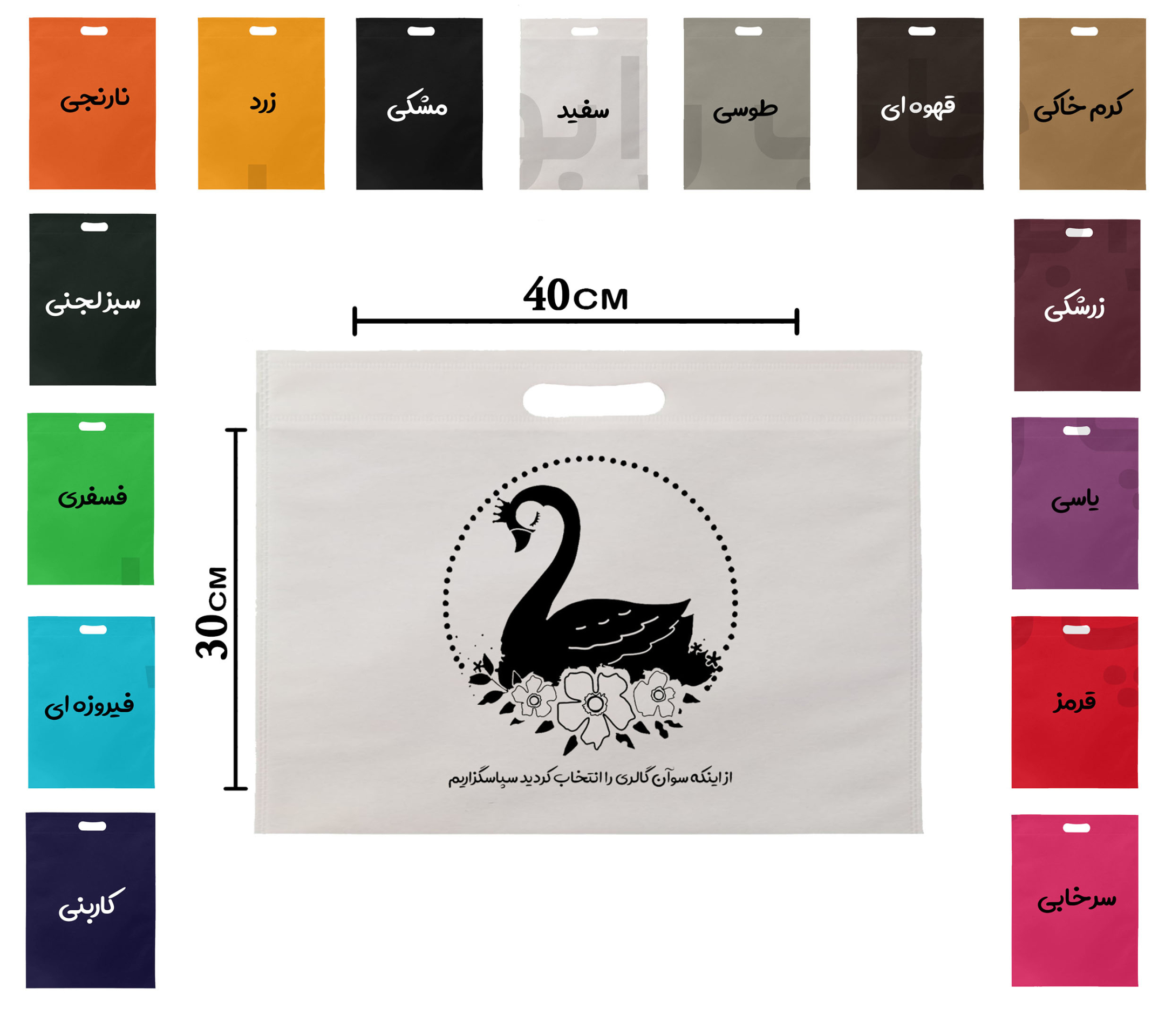 مابقی رنگ های پارچه فقط چاپ مشکی ، طلایی یا نقره ای قابل اجرا میباشد