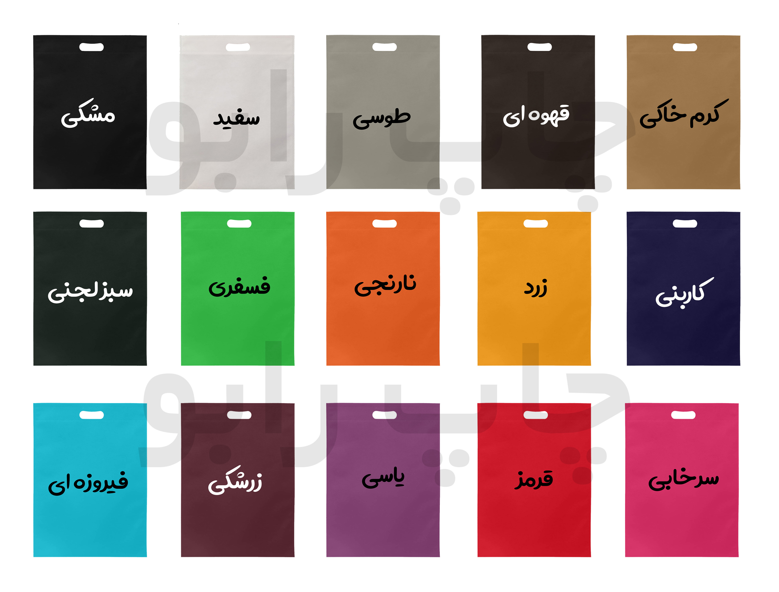 مابقی رنگ های پارچه فقط چاپ مشکی ، طلایی یا نقره ای قابل اجرا میباشد