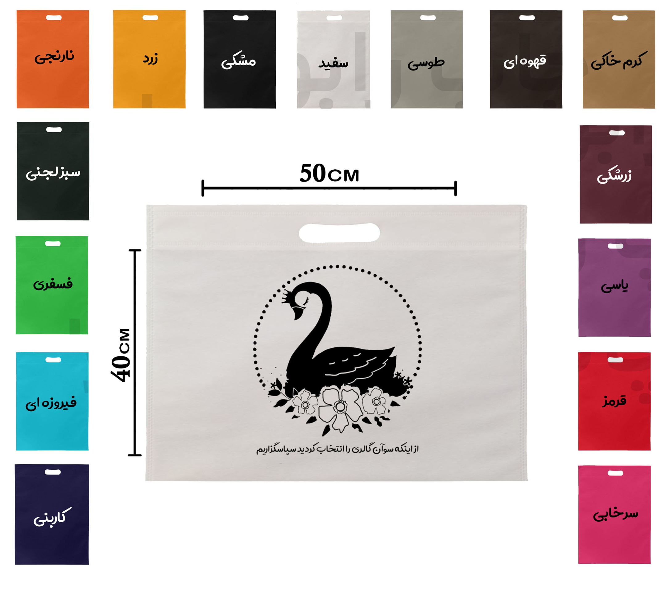مابقی رنگ های پارچه فقط چاپ مشکی ، طلایی یا نقره ای قابل اجرا میباشد